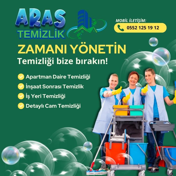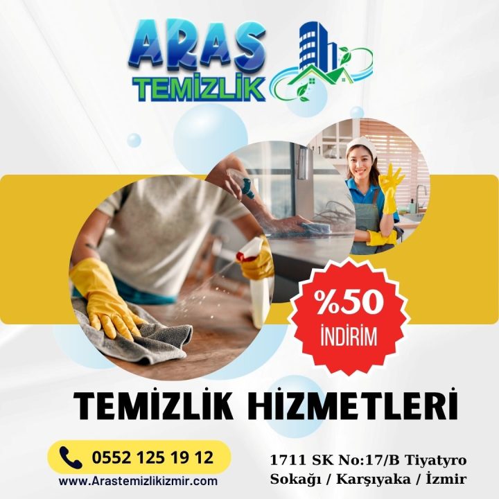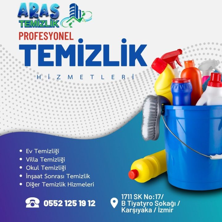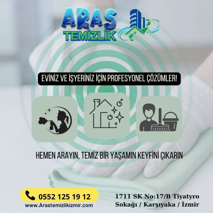Aras Temizlik İzmir’de Ev Temizliği, Ofis Temizliği, Dış Cephe Cam Temizliği, İnşaat Sonrası Temizlik, Okul ve Kreş Temizlik Hizmetleri, Fabrika Temizliği, hizmetlerini sunmaktadır.